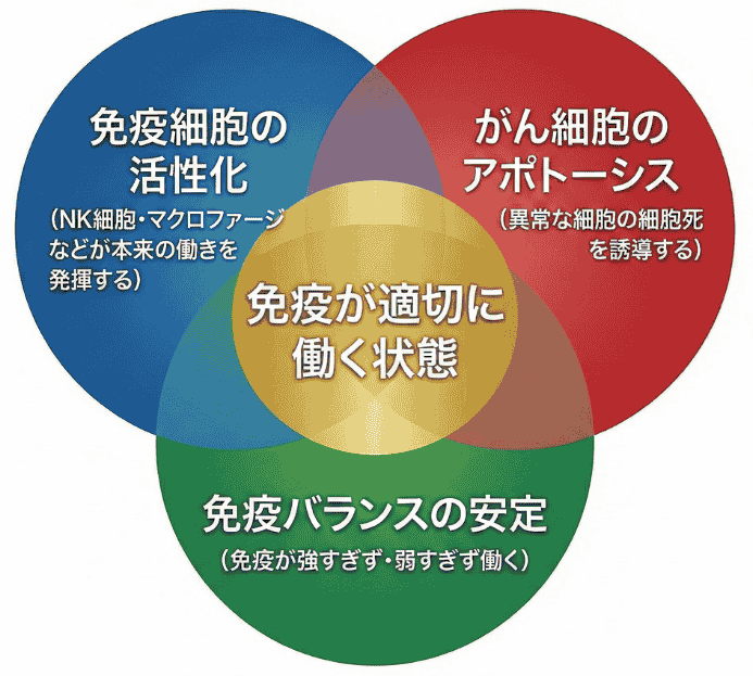 抗酸化作用は、単独で働くものではなく、免疫機能と相互に影響し合いながら、体の防御機構を下支えする役割を担っています。