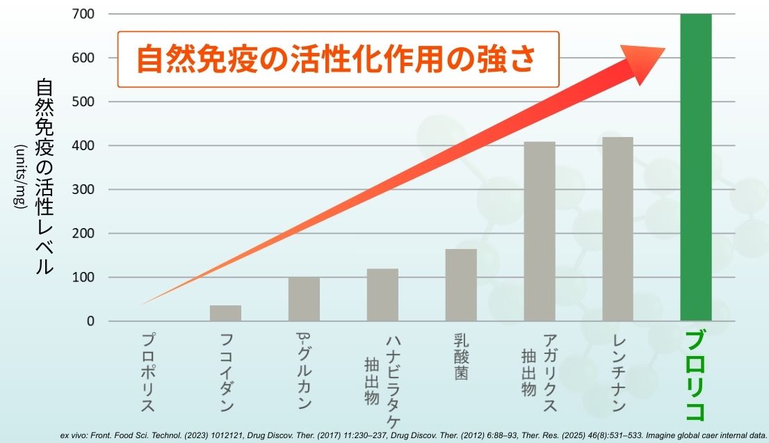 ブロリコは、免疫研究の文脈において、自然免疫を動かす力が明確に確認された成分として位置づけられています。