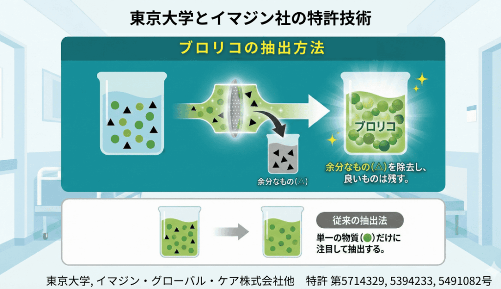 東京大学とブロリコの製造を行うイマジン・グローバル・ケア社は共同研究を行い、その過程で、免疫の働きは単一成分ではなく、複数の成分が相互に作用することで最大限に引き出されるという点に着目しました。
